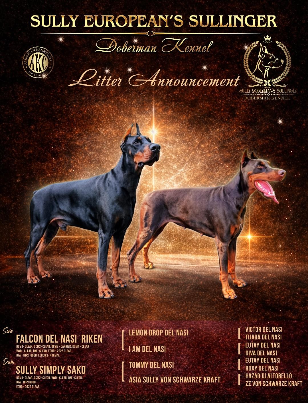 - All puppies are AKC reg